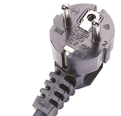 The contacts in the C7 European mains plug are integrally moulded into thermoplastic glass-filled polyester, with a rigid inner cap providing additional strength and security. Overmoulded with a resilient and flame-retardant PVC casing.